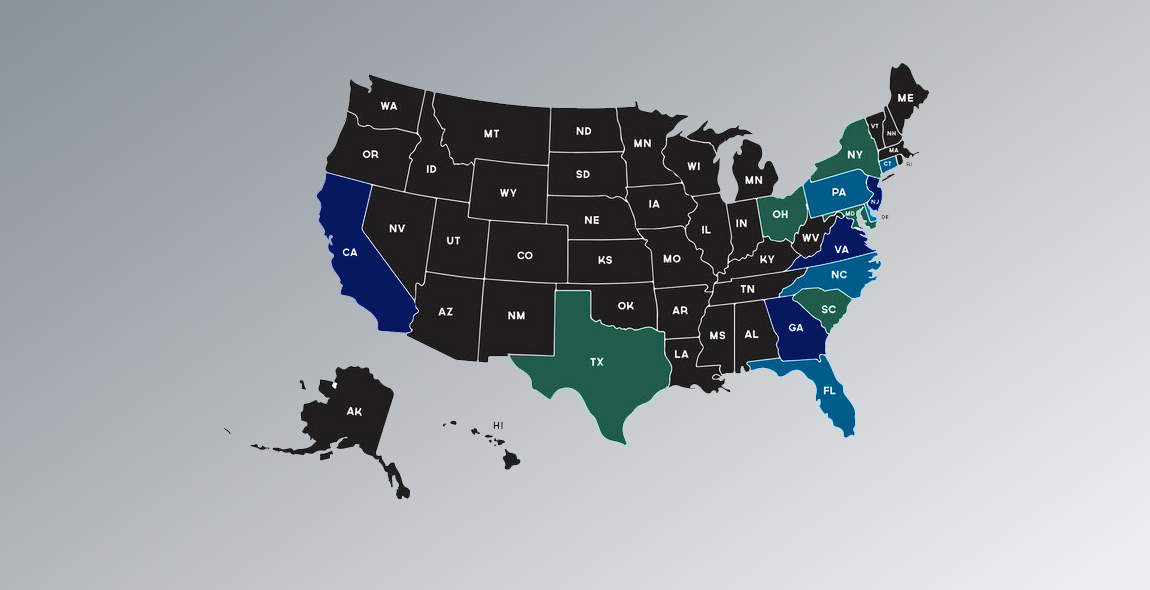 We provide insurance in California, Connecticut, Delaware, Florida, Georgia, Maryland, New Jersey, New York, North Carolina, Ohio, Pennsylvania, South Carolina, Texas, Virginia.